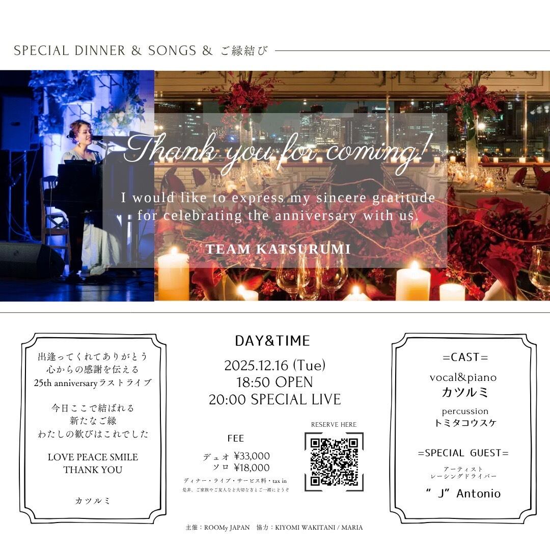 ☆2024.12.16(火)18:50〜開場 20:00〜LIVE【カツルミ25thアニバーサリー LIVE〜感謝〜】